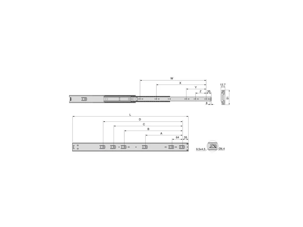 - Altura 51 mm y largo 400/500 mm.