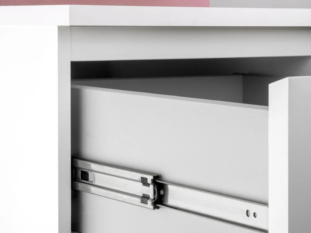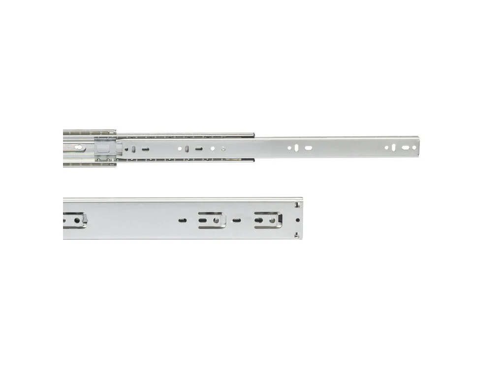 Guías de extracción total para cajones con deslizamiento suave y silencioso gracias a sus rodamientos de bolas de alta calidad. Destacan además por su gran capacidad de carga que puede llegar a soportar hasta 68 kg por cajón.