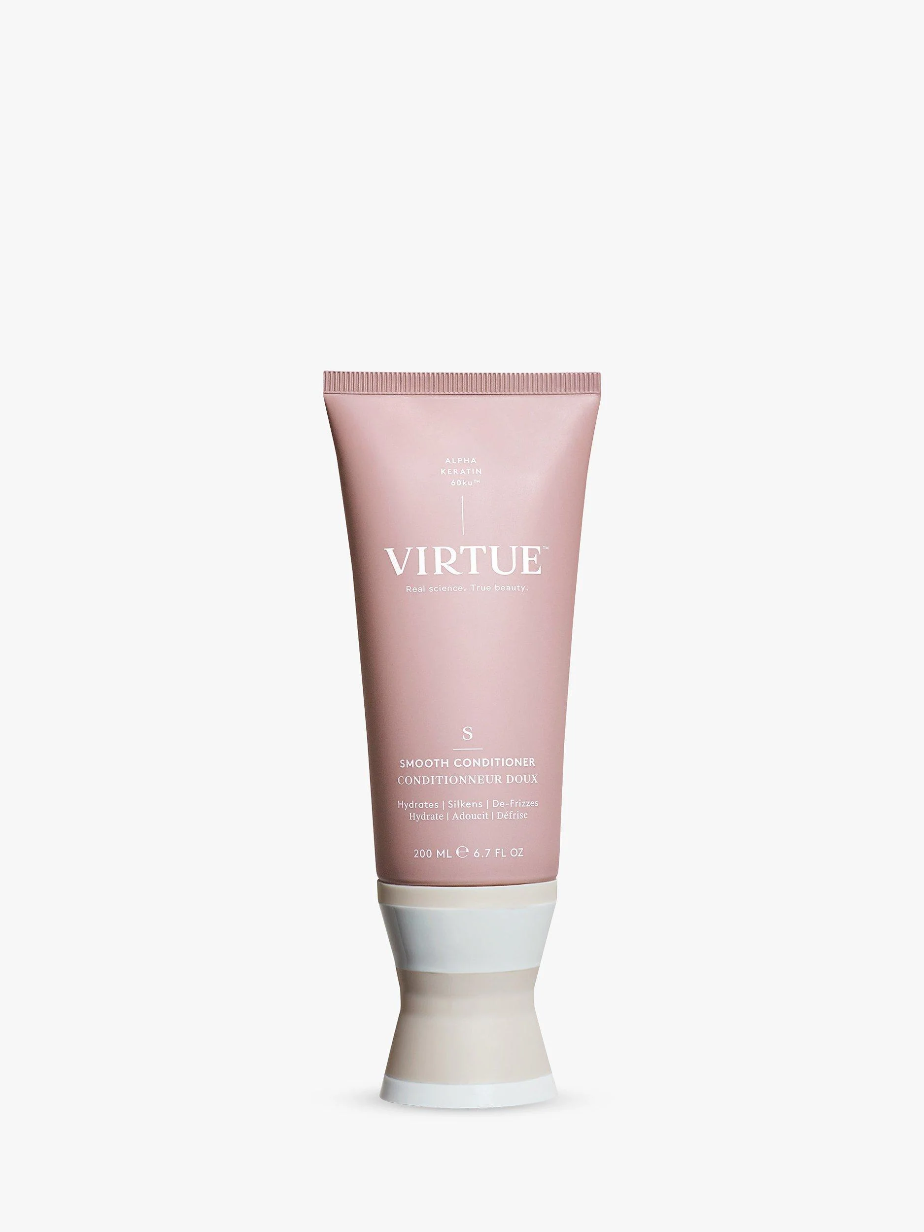El acondicionador Virtue® Smooth elimina el encrespamiento con cada ducha. Suaviza la cutícula, combate la humedad y retiene la hidratación, aportando al cabello un brillo radiante.
