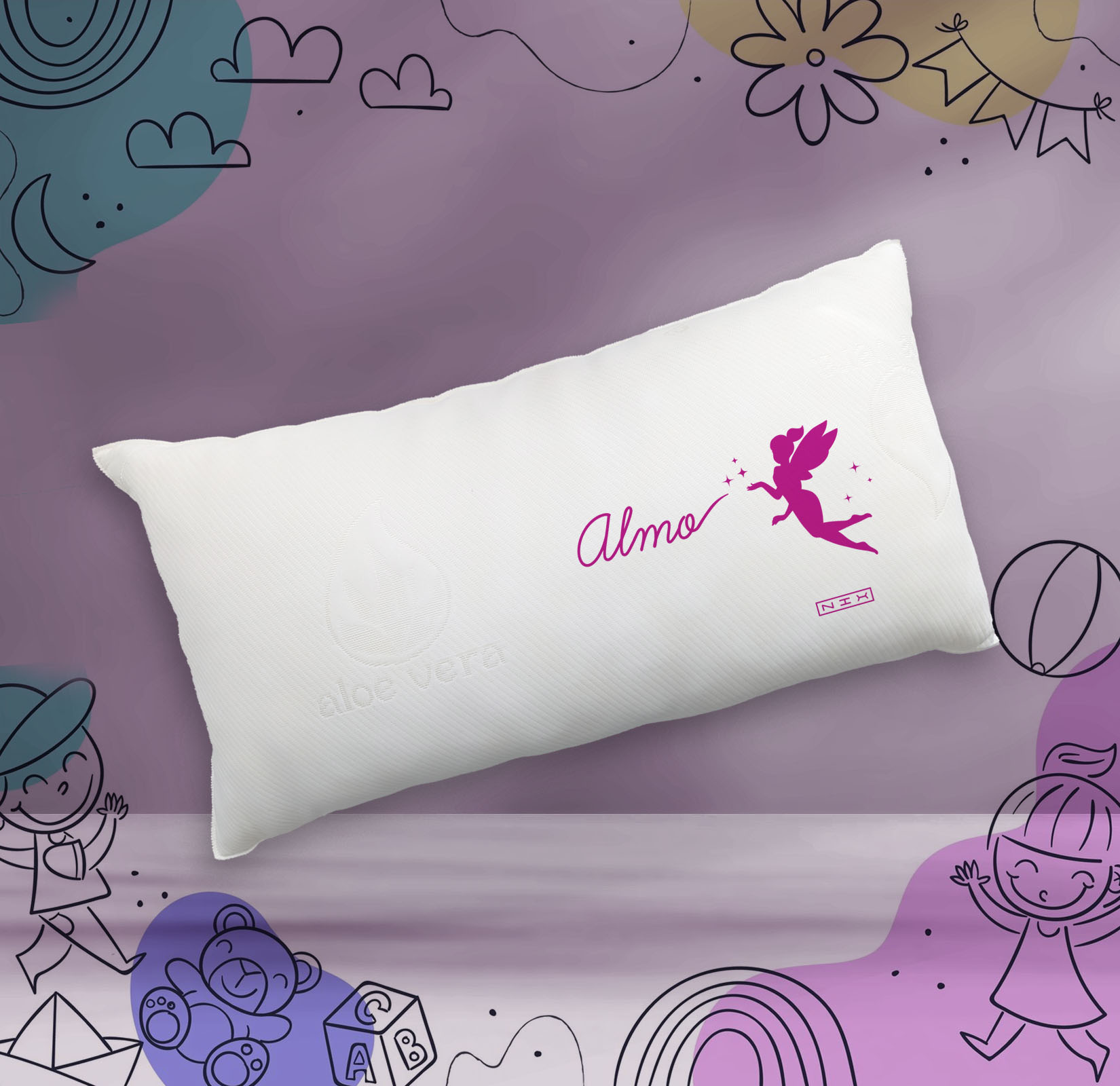 Almohada NIX Moon ALMO Hada – Almohada infantil – Núcleo viscoelástico – Tejido Aloe Vera – 70 cm