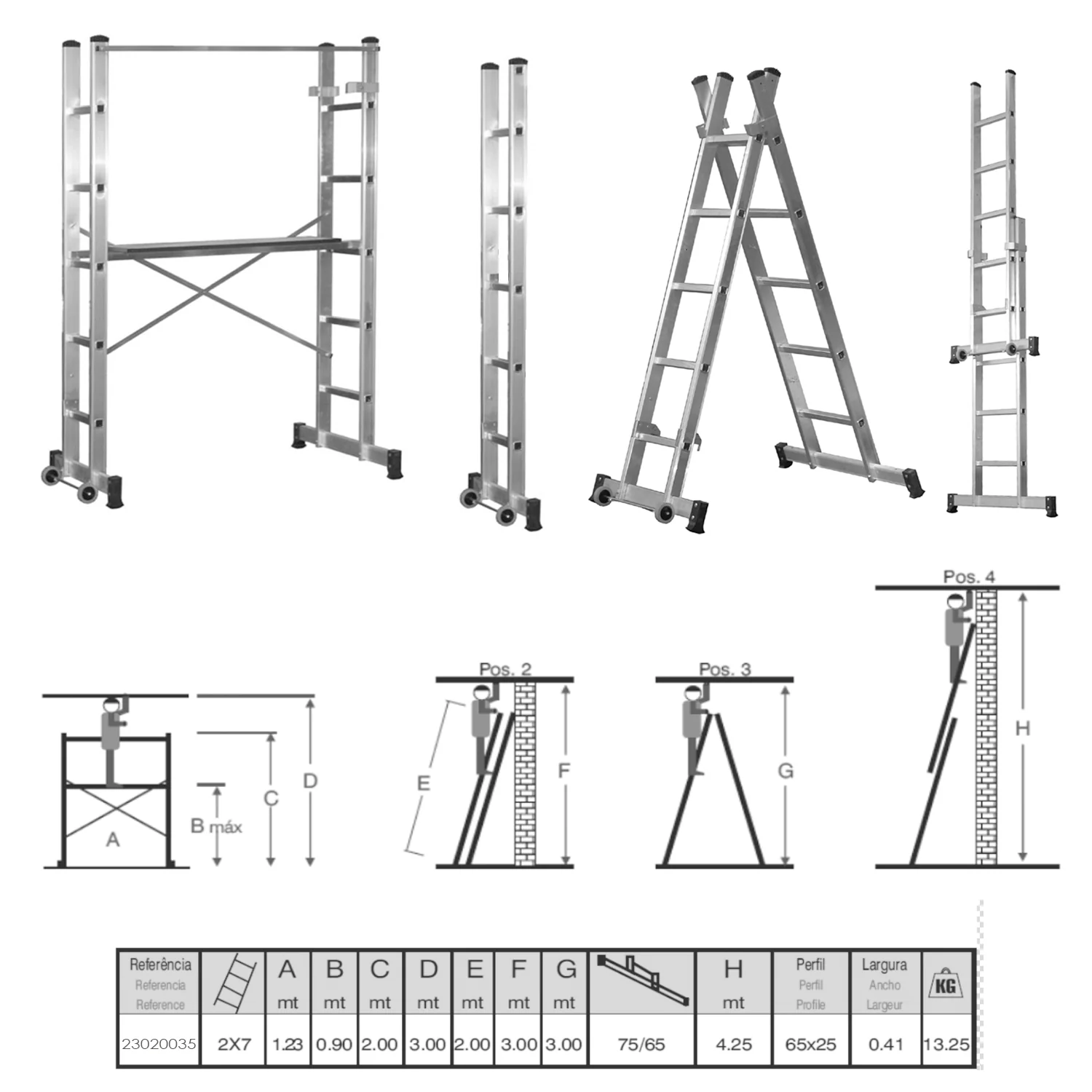 - Modo escalera telescopica: 4. 25 metros