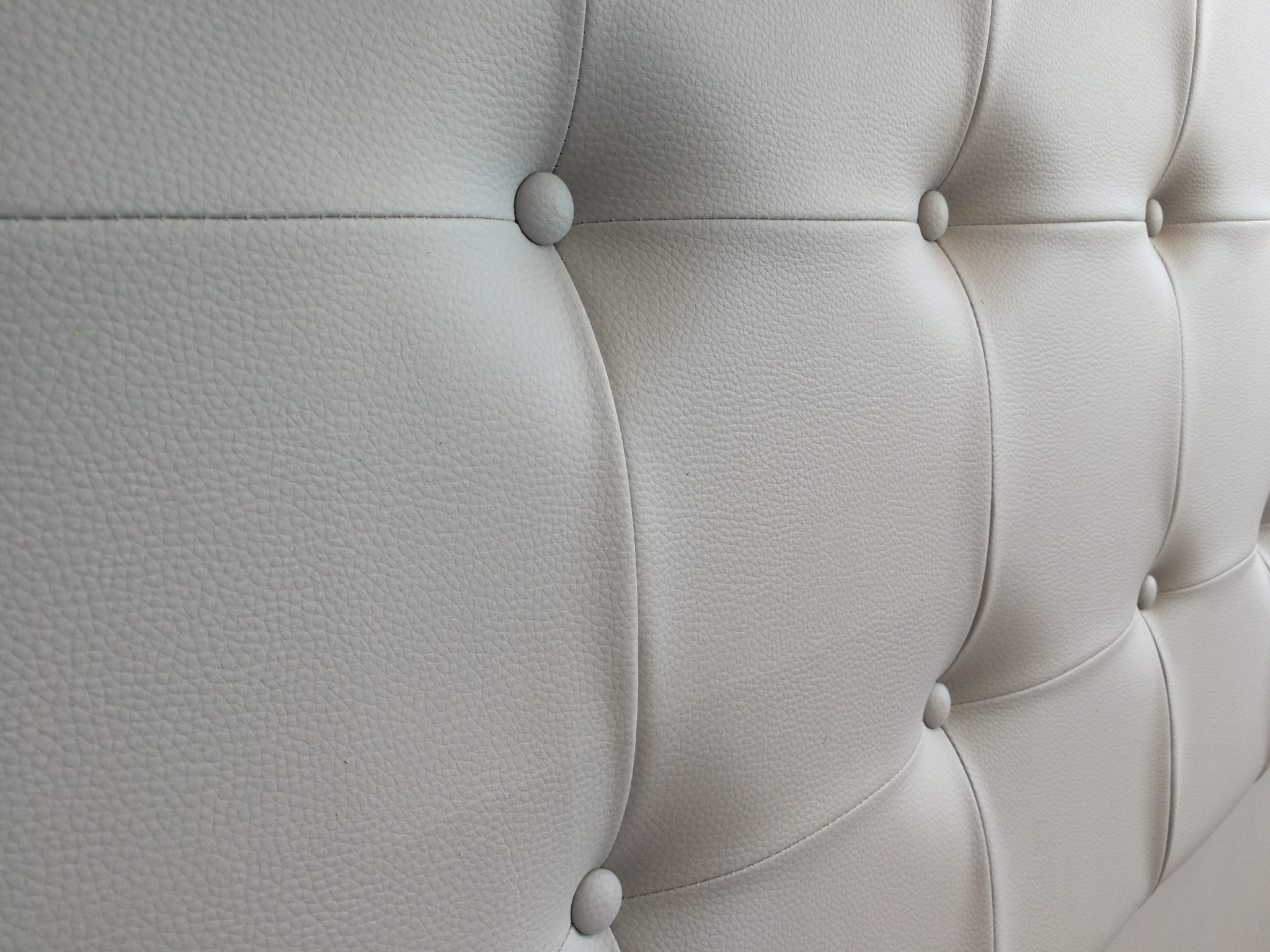 - Tapizado en polipiel, con pliegues y botones a juego.