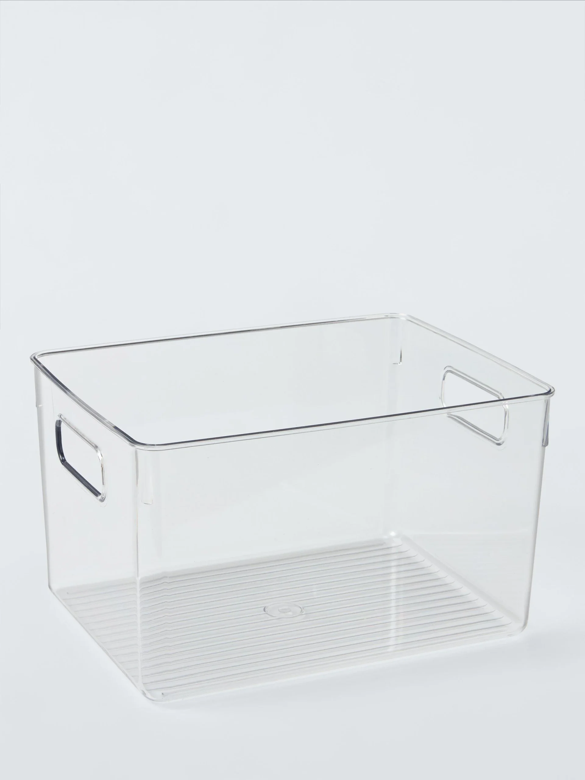 Mantén tu hogar ordenado con nuestra caja de almacenaje. Tiene el tamaño perfecto para guardar objetos cotidianos y asas resistentes que facilitan su transporte. Su diseño multiusos se adapta a cualquier habitación, y el plástico transparente, fácil de limpiar, te permite ver su contenido.