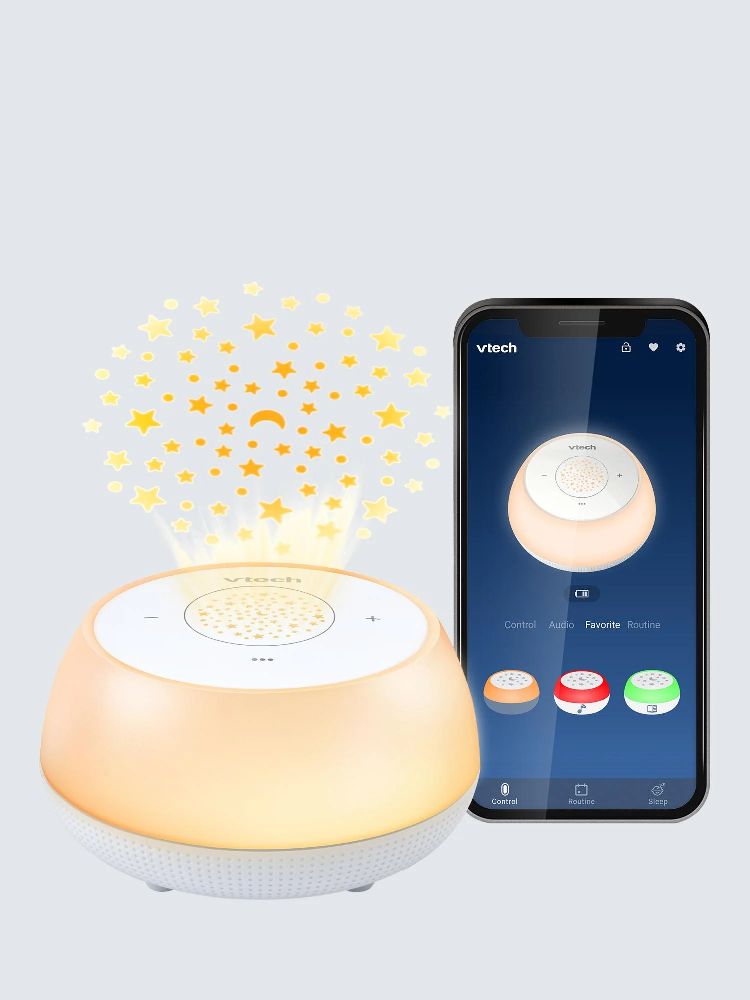 Fomenta hábitos de sueño saludables con la colorida luz nocturna, el proyector de techo y el altavoz Bluetooth. Crea ambientes relajantes con 40 cuentos preprogramados, música clásica, nanas y sonidos de la naturaleza, o reproduce música desde tu servicio favorito del móvil. También puedes grabar y subir tu propia voz, canciones o cuentos con la aplicación gratuita.