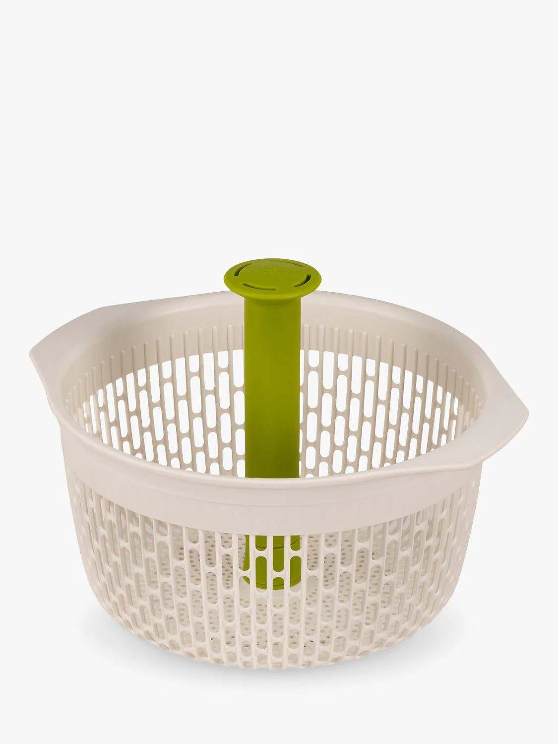 4.5/5 Con un diseño ingenioso, la Spindola de Joseph Joseph combina las funciones de una centrifugadora de ensalada y un colador en un solo producto, ahorrándote valioso espacio en la despensa. Para preparar ensaladas, simplemente coloca el eje y la ventosa en la cesta, añade los alimentos y enjuágalos como de costumbre bajo el grifo. A continuación, fija el colador a la base del fregadero con la ventosa y bombea el eje hacia arriba y hacia abajo para girar la cesta y expulsar el exceso de agua.