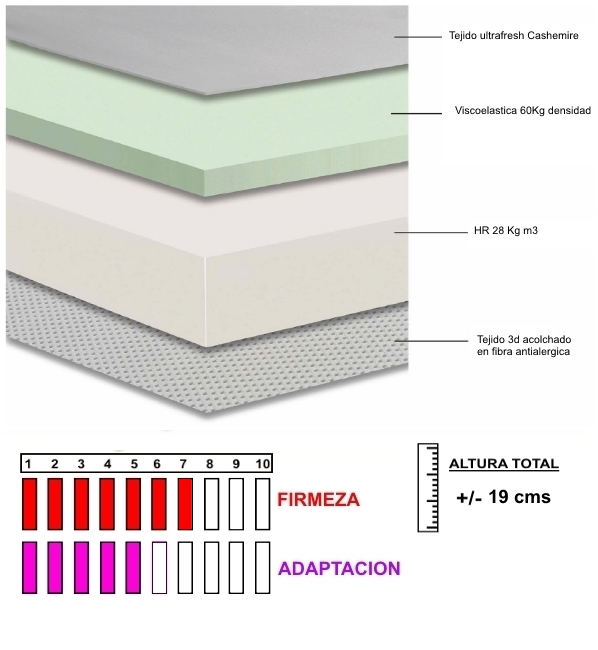 Máxima ergonomía y confort demostrado. Además, se adapta al cuerpo de la persona para facilitar un descanso reparador y agradable.
