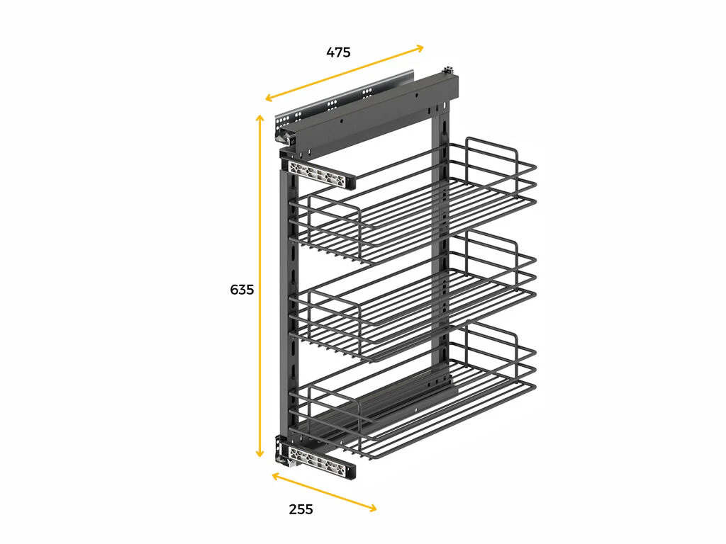 Carro extraíble para módulos inferiores de cocina fabricado en acero y en acabado gris antracita ideal para espacios reducidos o muebles auxiliares.