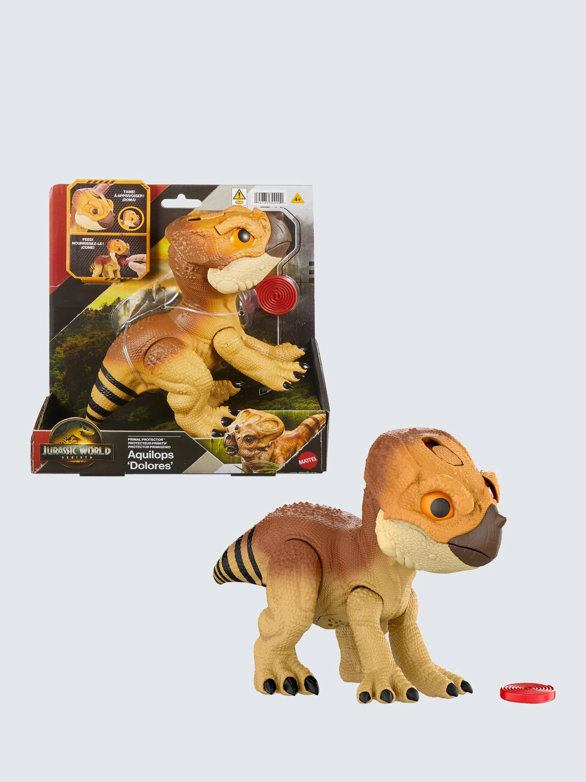 ¡Revive la interacción entre humanos y dinosaurios de Jurassic World: Renacimiento con este Aquilops Protector Primigenio! Inspirado en la relación entre Isabella y su compañera dinosaurio, Dolores, en la película, este juguete interactivo reacciona positivamente a las caricias, tiene un modo de acción «protector» que se activa con la cola y está listo para disfrutar de un dulce de regaliz. Este compañero de juegos activo, con un diseño inspirado en la película, es un regalo ideal para los amantes de los dinosaurios a partir de 4 años.