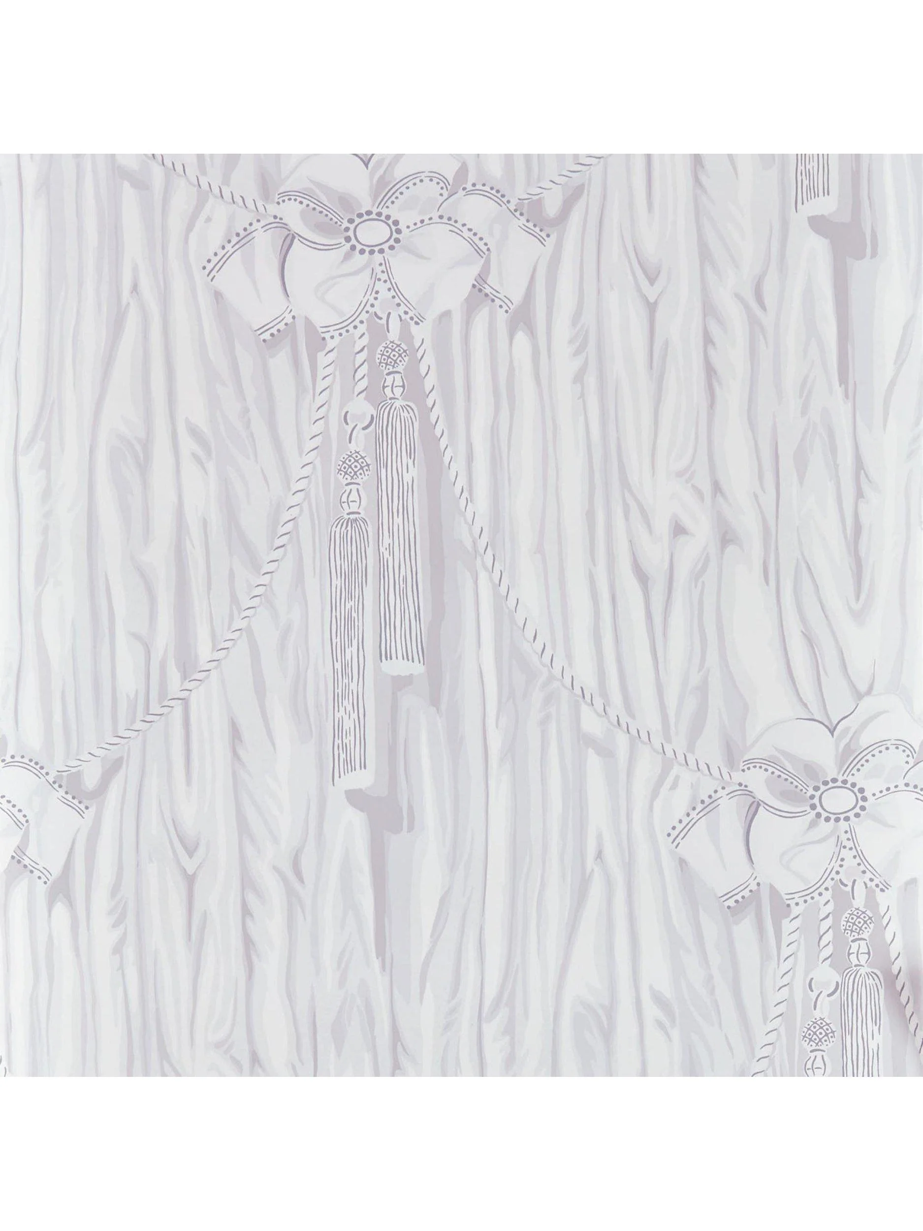 La pasión de Giles por subvertir los tropos del diseño lo impulsó a explorar nuevas versiones de este diseño original del archivo de Sanderson. El archivo en sí alberga una excelente colección de patrones de papel tapiz trampantojo de mediados a finales del siglo XIX, que representan cortinas, lazos, cintas y borlas, y aquí, Wilsford se envuelve en una ilusión.
