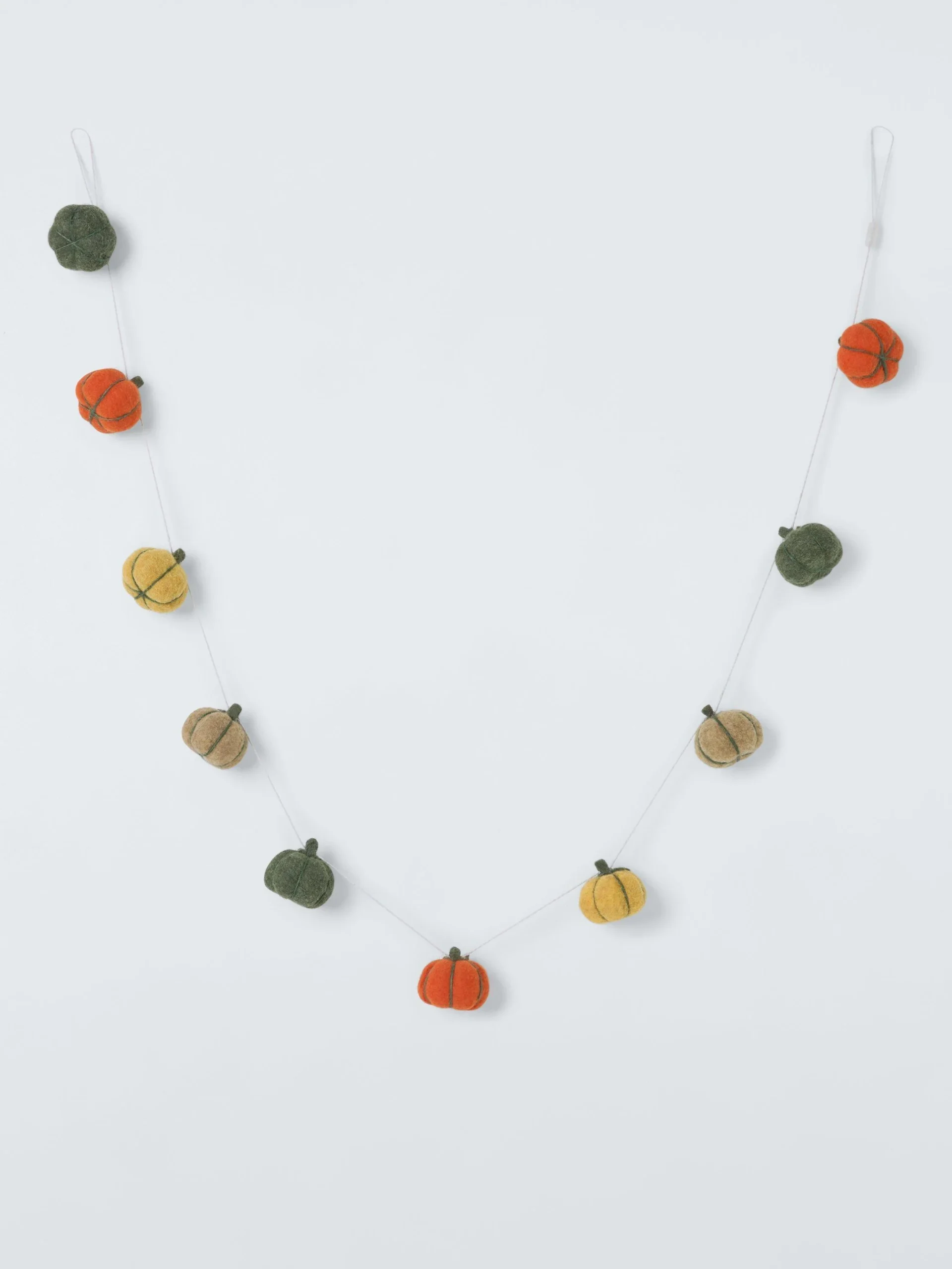 Esta linda guirnalda de calabazas de fieltro se puede colgar en cualquier lugar de tu casa para las celebraciones de temporada este otoño.