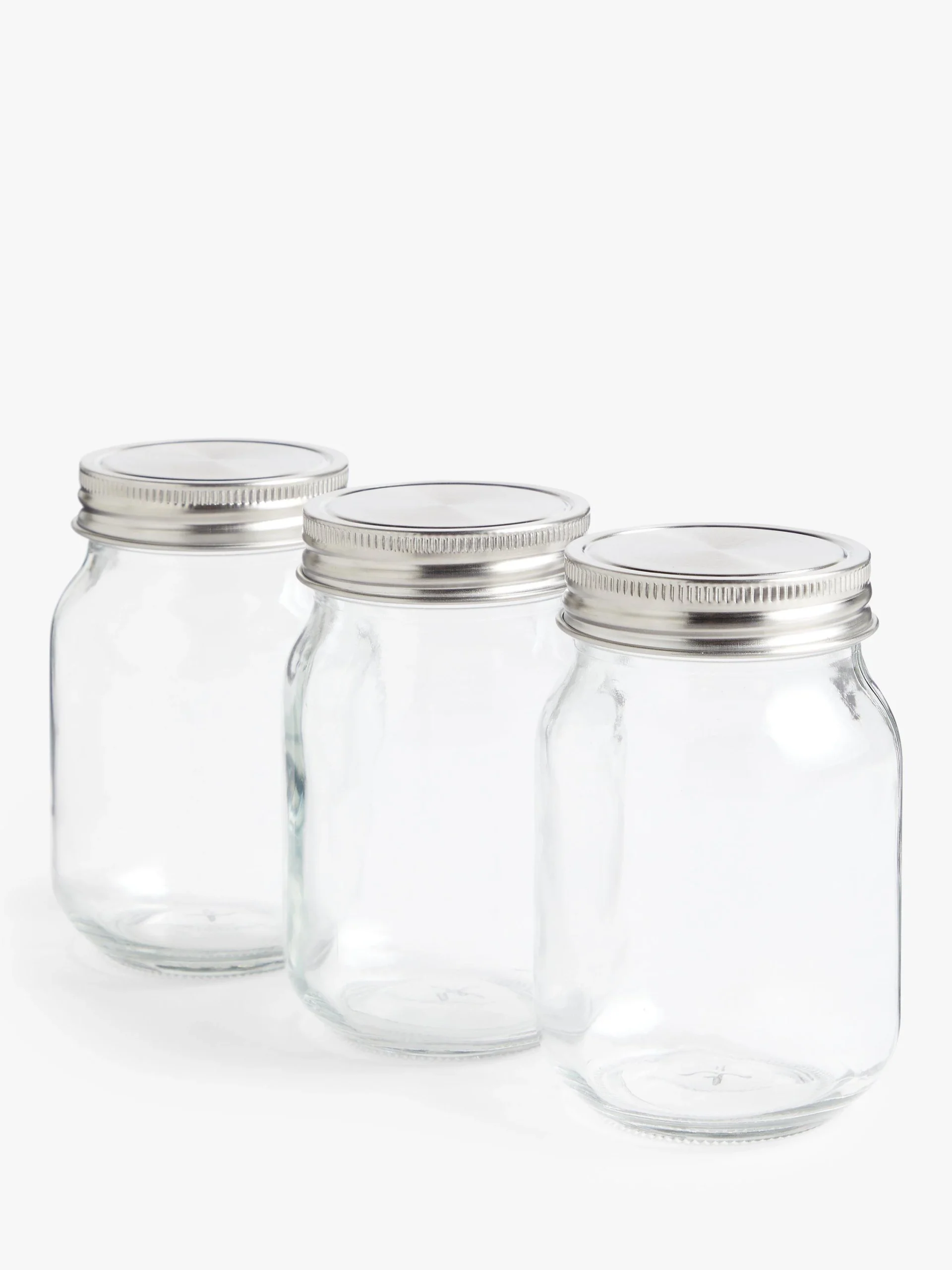 Juego de 3 tarros de cristal transparentes de 500 ml de Leckford Farm para almacenamiento.