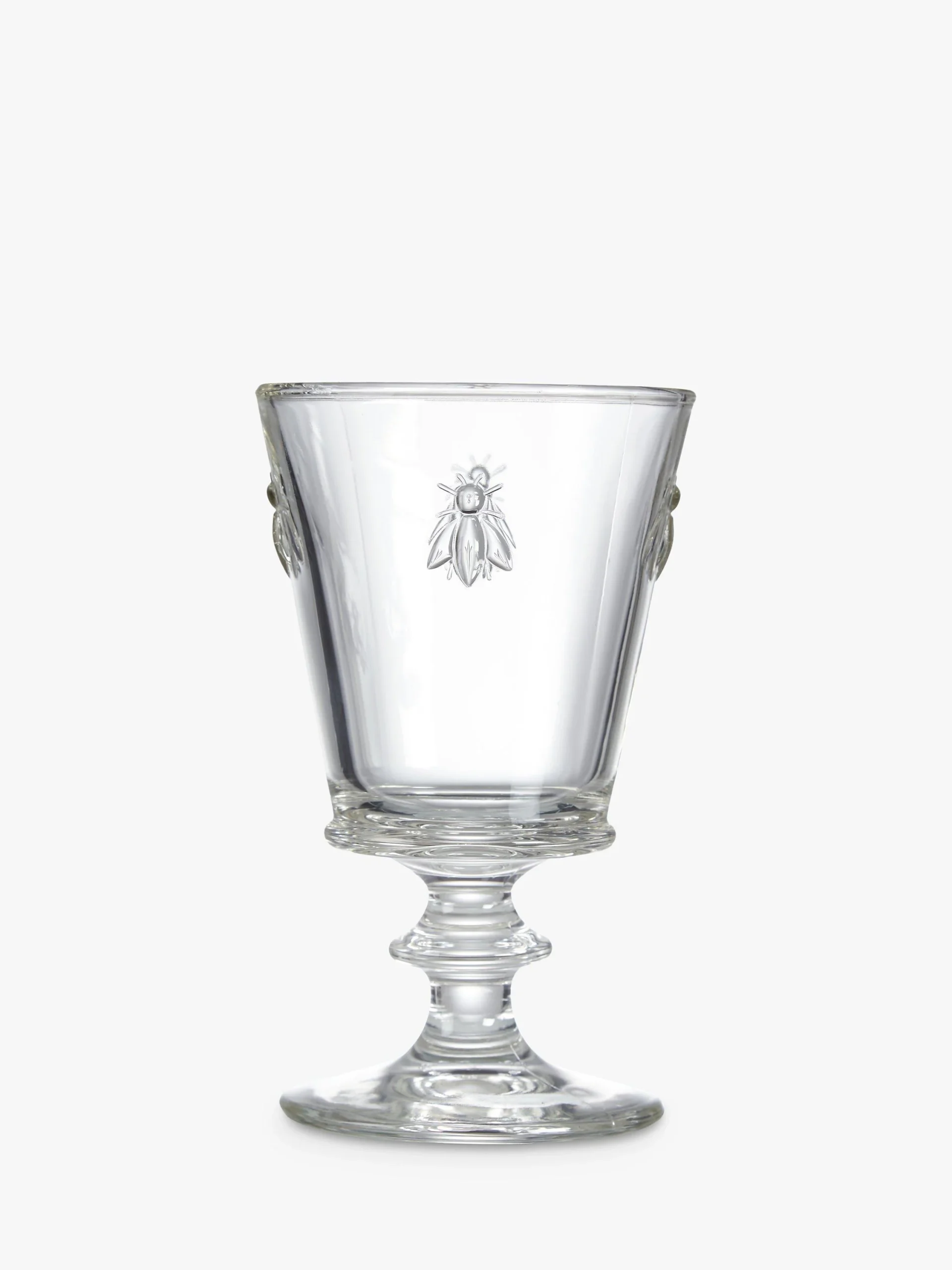 Juego de seis copas de vino La Rochère con un diseño táctil de abeja en relieve. Cada copa tiene una base pesada y una atractiva forma cónica, ideal para disfrutar de refrescos o vino. Aptas para lavavajillas.