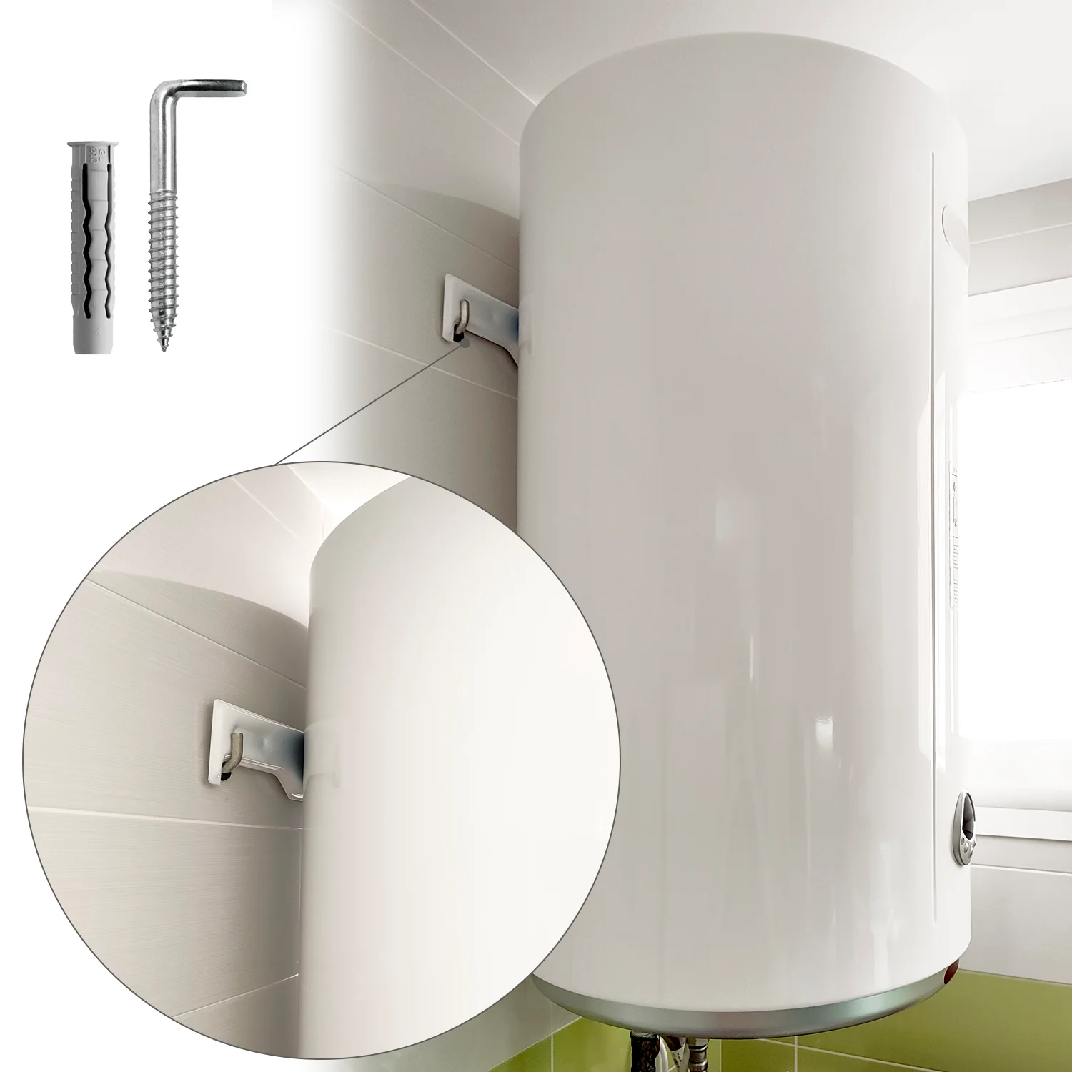 - Artículo conocido como fijación calentador, tacos termos de agua, alcayata calentadores, fijación calentadores de agua