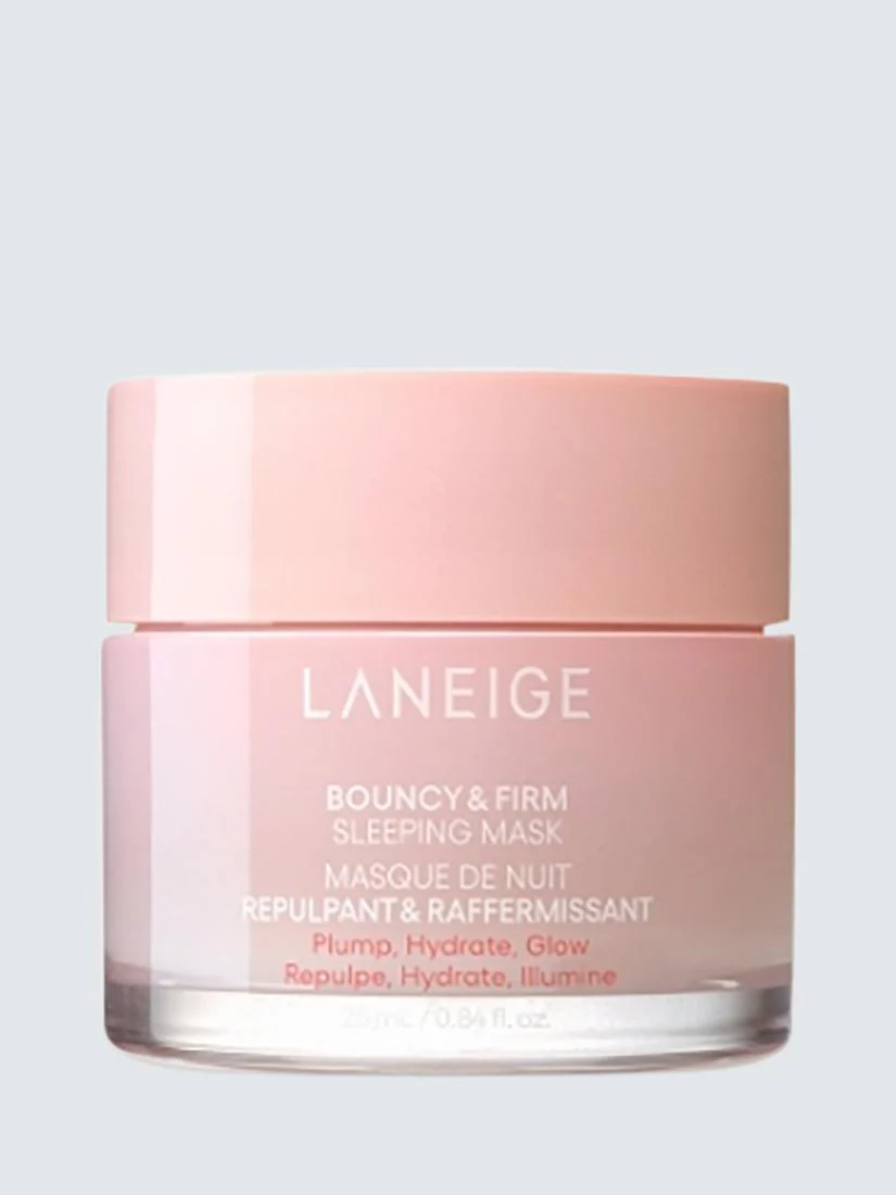 La mascarilla nocturna Bouncy & Firm de Laneige, que favorece una luminosidad similar a la de una almohada y una mayor elasticidad visible, nutre la piel mientras duermes, otorgándole un brillo terso al despertar.