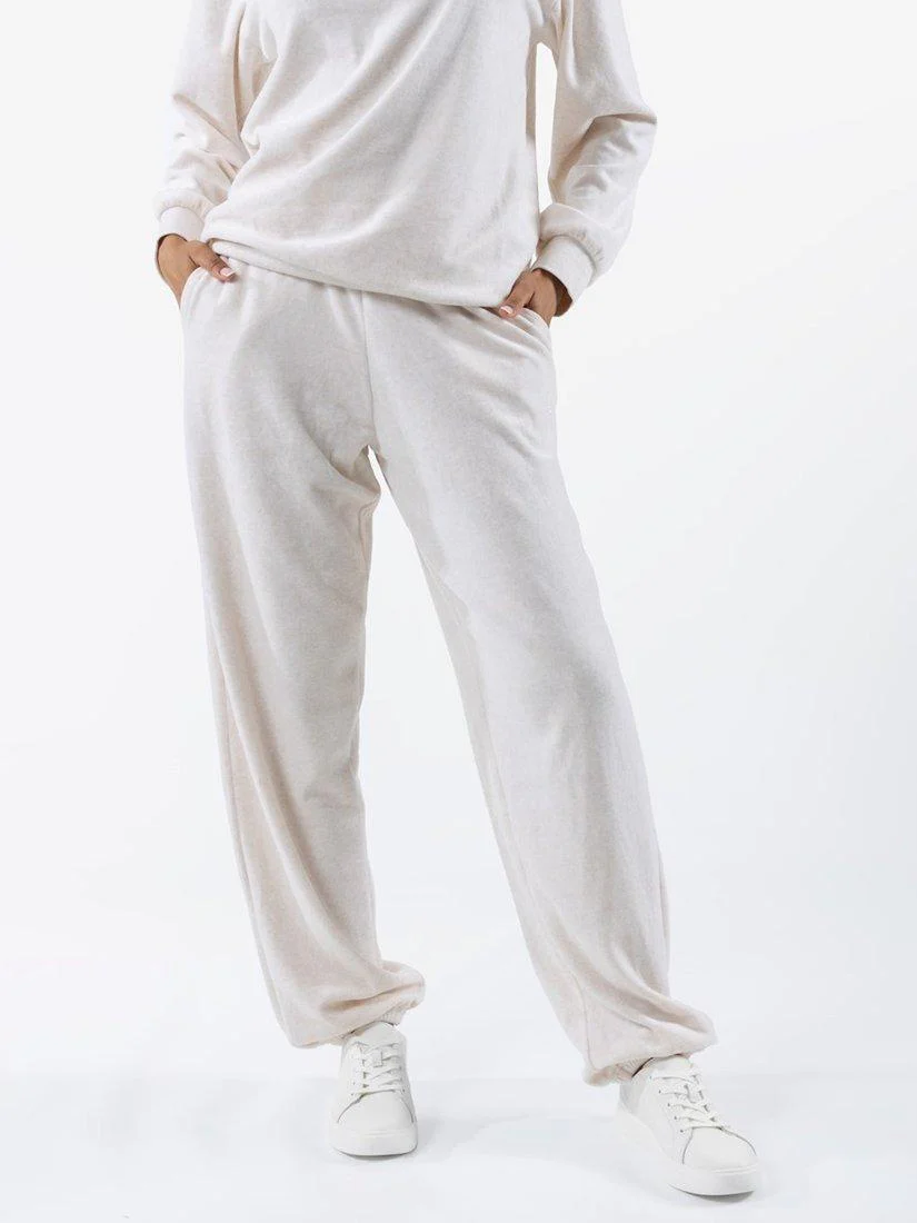 Pantalón deportivo de tiro medio de terciopelo Davidson de Juicy Couture, color avena