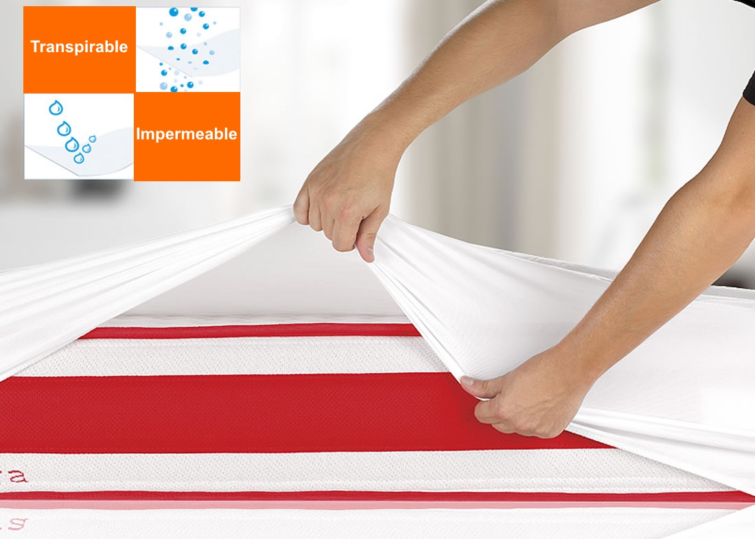 Su lámina de poliuretano no deja pasar líquidos, por lo que ayuda a proteger tu colchón. Totalmente transpirable y sin ruidos, presenta una gran elasticidad y máximo ajuste al colchón.