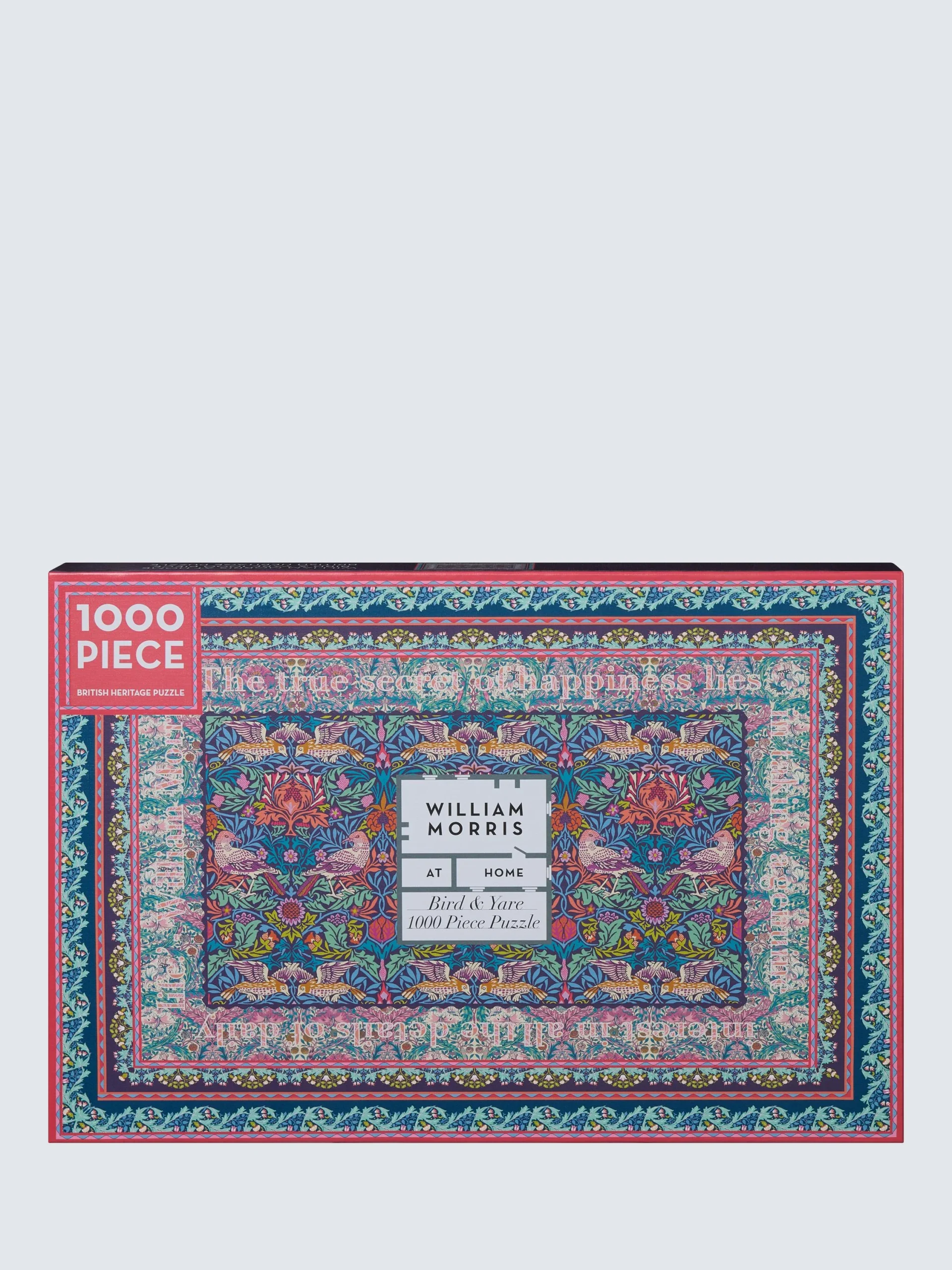 El diseño del rompecabezas está inspirado en dos obras de William Morris de los archivos de la Galería William Morris: Bird y Yare. Descubre los patrones, los pájaros cantores y el arte único que se esconde tras este intrincado diseño mientras armas este colorido rompecabezas de 1000 piezas.