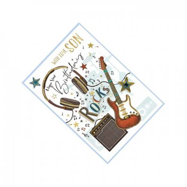 Material: Cartulina. Diseño: Guitarra, Auriculares, Estampado, Radio, Estrellas, Texto. Contenido: 6 sobres. Ocasión: Cumpleaños.