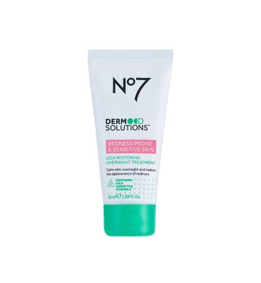 Reduce visiblemente la apariencia de enrojecimiento* con el Tratamiento Nocturno Restaurador CICA No7 Derm Solutions. Aprobado por dermatólogos, este tratamiento es apto para piel sensible con tendencia al enrojecimiento.