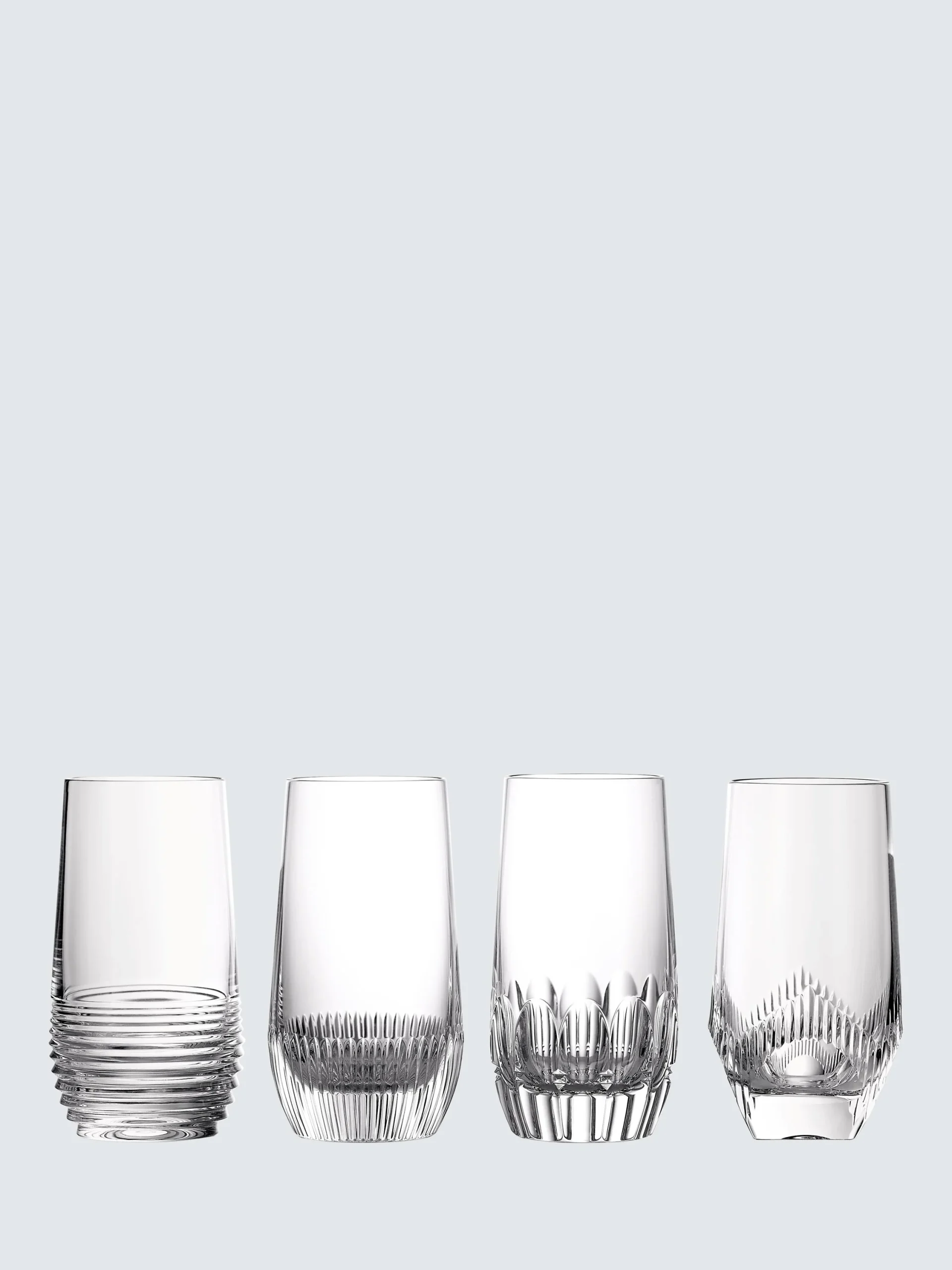 Estos vasos altos de cristal están diseñados por expertos para realzar el sabor y los aromas de los cócteles largos. Elaborados con el cristal más fino de la marca, que ofrece una claridad excepcional y una resistencia superior, el juego incluye cuatro diseños de cristal tallado diferentes: Argon, Talon, Neon y Circon. Se presenta en una caja de regalo Waterford.