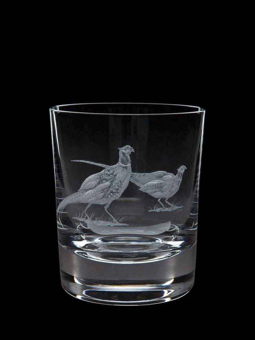 Un exquisito vaso de whisky de cristal, meticulosamente grabado a mano por el renombrado maestro grabador Nick Davey. Una verdadera obra maestra de la artesanía, este vaso exhibe el intrincado arte de dos majestuosos faisanes. Fabricado en el Reino Unido, cada vaso es una creación única, elaborada con el máximo cuidado y precisión.