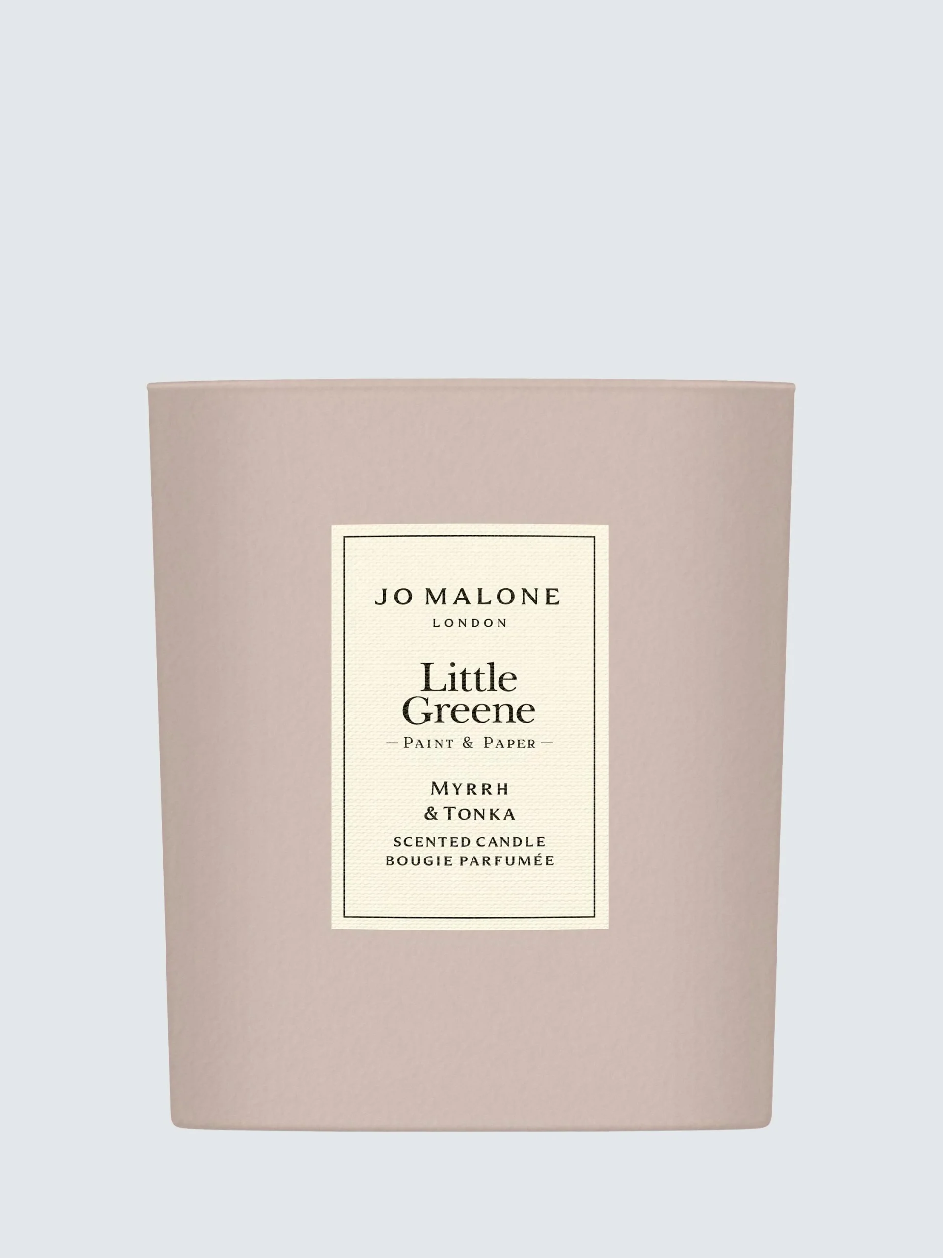 Nos asociamos con la marca británica de pinturas y papeles pintados Little Greene para decorar nuestra querida vela perfumada de mirra y haba tonka.